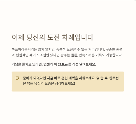 하프마라톤은 단순한 거리 이상의 상징성을 가진다. 풀코스로 가기 전 반드시 거쳐야 할 관문이자, 많은 러너가 ‘러닝 라이프의 전환점’으로 기억하는 지점이다. 처음 하프마라톤을 완주했을 때의 성취감은, 숫자 이상의 경험으로 남는다.