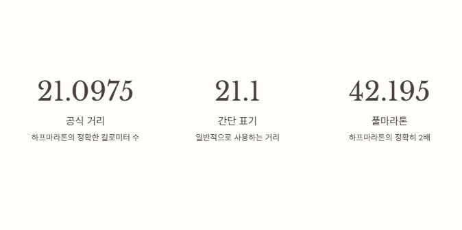 - 하프마라톤거리는 21.0975km (약 21.1km)